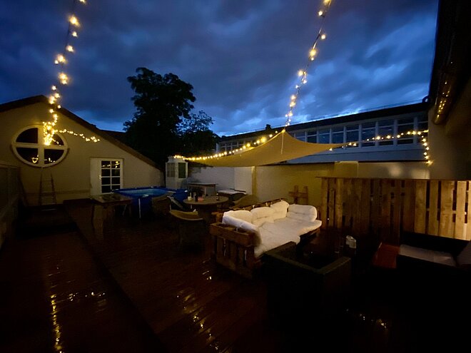 Und wenn die Sonne scheint, ist unsere Dachterrasse der place-to-be! Genieße die Sonne, entspanne dich in den Abendstunden und lass die Ruhe der Umgebung auf dich wirken.